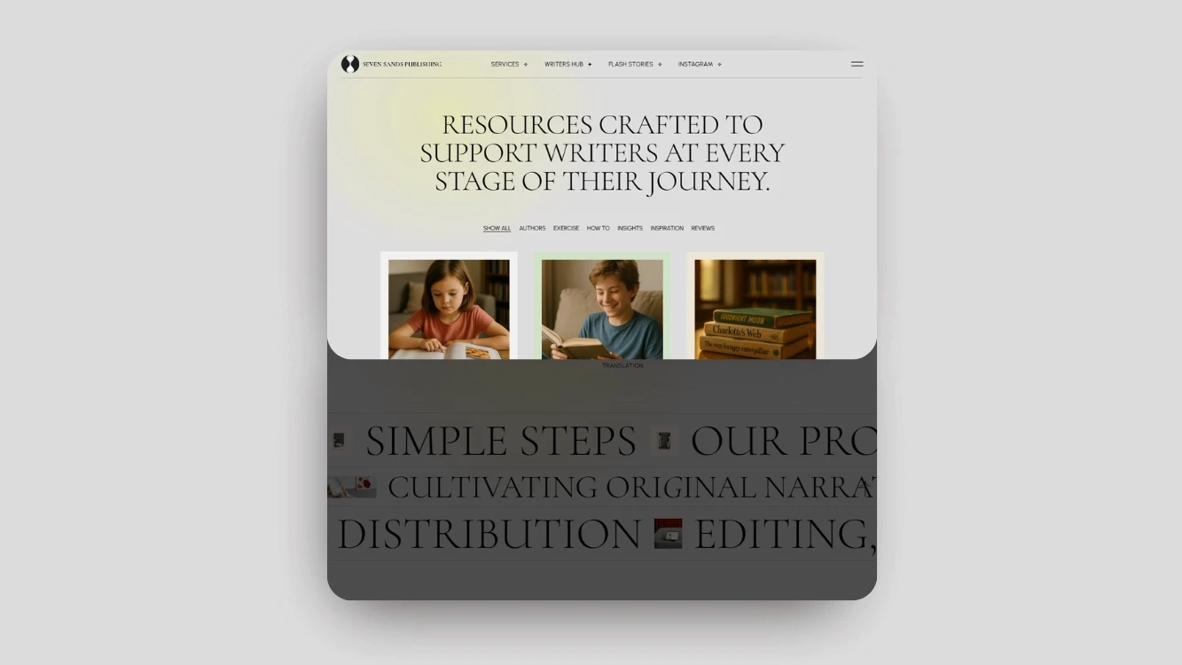 Great storytelling deserves a platform built with equal craftsmanship. For Seven Sands Publishing, the objective was to translate literary excellence into digital form while establishing the operational backbone of a modern boutique publishing house.